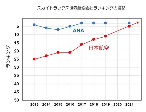 スカイトラックスの世界航空会社ランキング 2021 が 9月28日に発表されましたね。日本勢は ANA さんが前回に続き 3位。9月29日に記事を読んで、キュンとした方も多いことでしょう。しかし信じられないことにあの JAL が 5位にランキング。猛追されている気が…