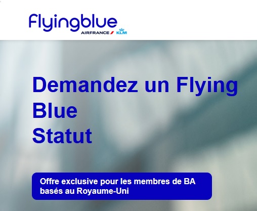 2024年12月30日の発表に対して、2025年 1月14日には エールフランス-KLM の Flying Blue が英国在住 Executive Club 会員限定でステータスマッチを実施。素早い動きでした。