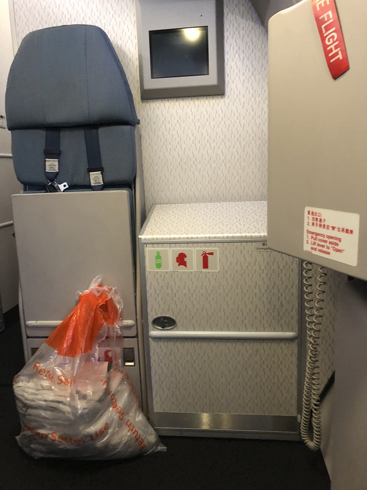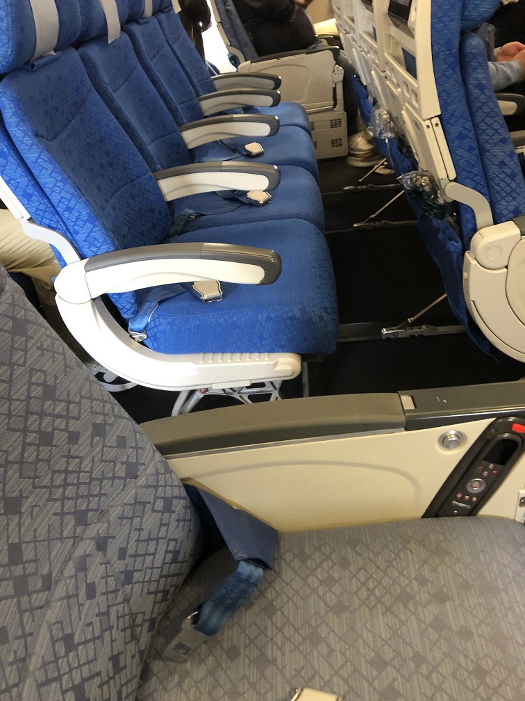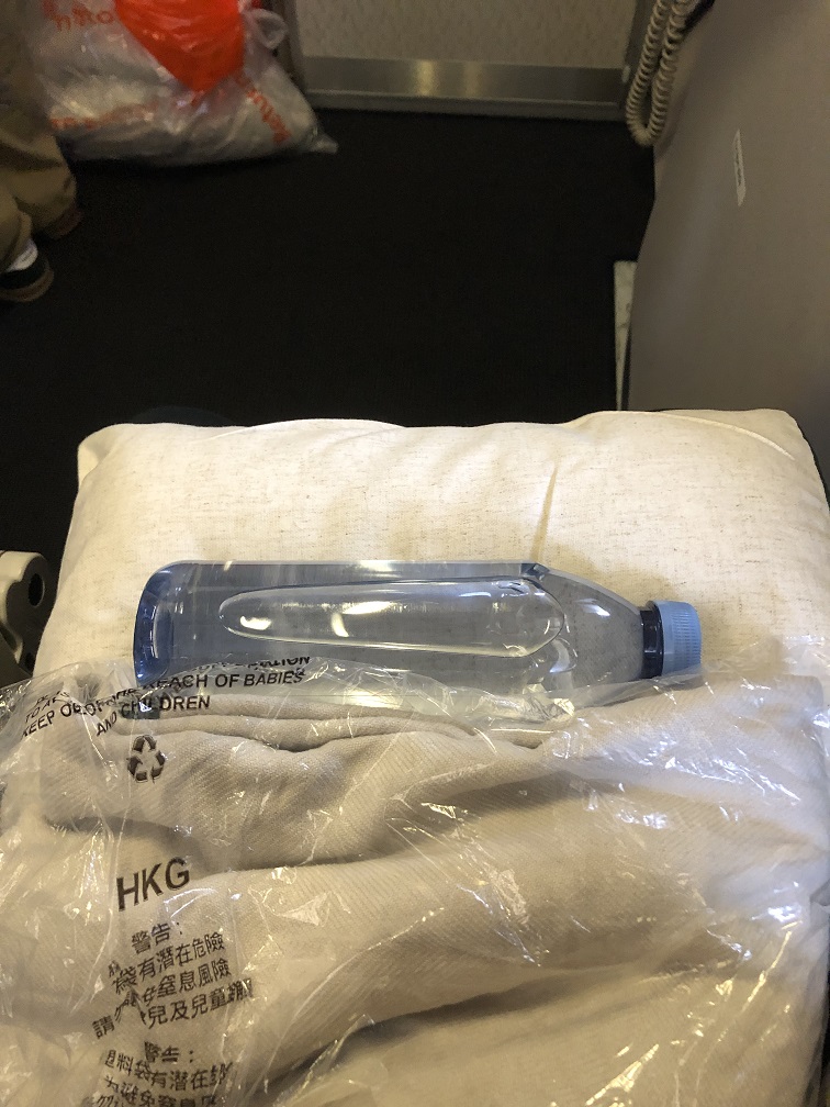 ただし私のシートにはクッション、毛布、ペットボトルの水が置いてありました。エコノミーキャビンのエメラルド会員へのサービスの標準規格と言ってよさそうです。