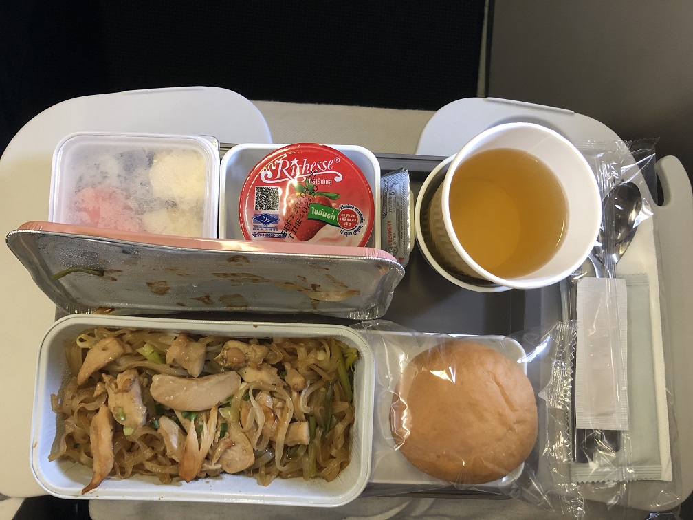 やはり個別挨拶があり、安定飛行に移ると機内食の注文を取りに来ます。そして機内食のトレイは、ワゴンに先んじて手で運んできます。