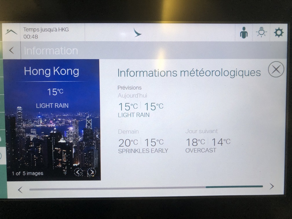 2時間50分のフライトなので、すぐに目的地が迫ってきます。乗継時間が長いためか、次の便のゲートは表示されません。天気予報は雨。バンコクに比べると相当寒い感じがするはず。